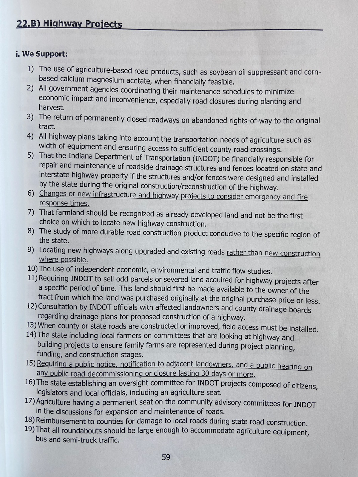 Aug 25, 2023. New. Farm Bureau Policy of requiring Public Hearings for any public road decommissioning longer than 30 days. The intent is to lobby the state legislature to make this a public law.
