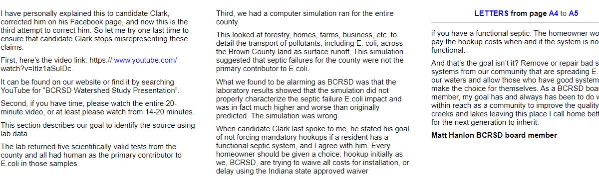 In response, I requested that the Brown County Democrat publish an alternate letter that I provided which was only a paragraph long and simply stated that I had drafted a response to Paul Hazelwood and that it would be published at independentvotersofbrowncountyin.com.